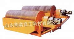 該類設備利用永磁磁系所產(chǎn)生的磁力,將礦漿中的磁性礦物吸引到圓筒表面上來,并隨著圓筒一起旋轉(zhuǎn),待脫離磁場作用后在重力、(刮板)作用下,排出機外,而非磁性物料從尾礦口排除,完成分選作用。
